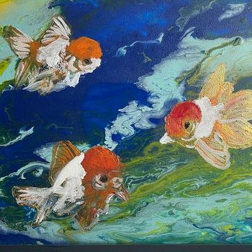 A new way to creating acrylic pour artwork. Fun with acrylics and painting of the beautiful red cap goldfish!